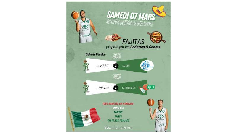 Samedi 07 mars Soirée repas & Matchs