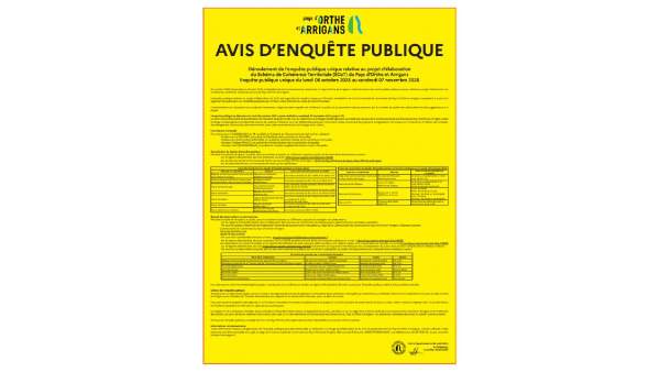 Déroulement de l’enquête publique unique relative au projet d’élaboration du Schéma de Cohérence Territoriale (SCoT) du Pays d’Orthe et Arrigans Enquête publique unique du lundi 06 octobre 2025 au vendredi 07 novembre 2025